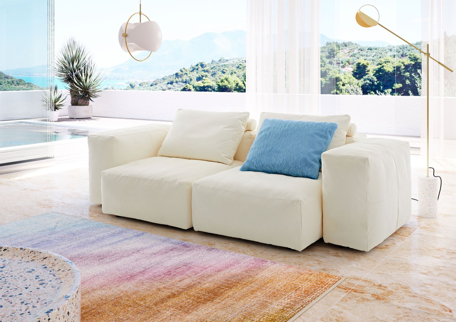 Fließende Formen, rund, organisch und elegant, das ist die aktuelle Gestaltungslinie bei Sofa- und Wohnlandschaften. Sie laden ein, sich fallen zu lassen, zu versinken und einzutauchen in diese neue Gemütlichkeit und Wohnkultur der Entspannung.